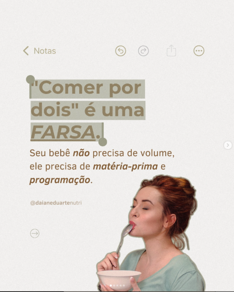 Sou nutricionista integrativa, especializada no atendimento de tentantes, gestantes e mulheres em tratamento de fertilização in vitro (FIV). Minha atuação é 100% online, e meu propósito vai além de montar uma dieta: busco ajudar mulheres e casais a viverem uma gestação saudável, com mais segurança, clareza e consciência desde o período pré-concepcional. Atuo com base no conceito DOHaD, que relaciona os cuidados nutricionais dos primeiros 1000 dias de vida com a saúde futura da criança.